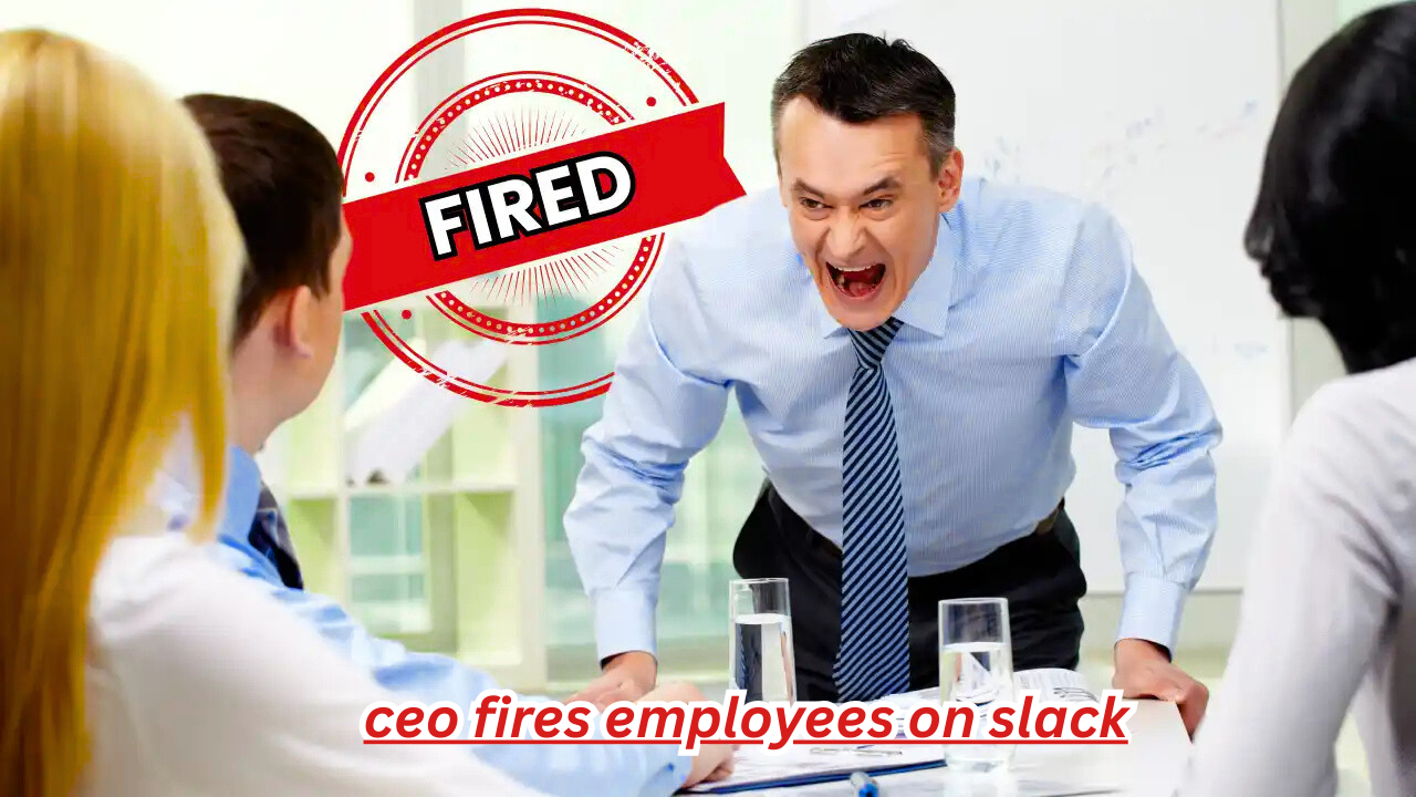 A: CEO fires employees on Slack means the company leader dismisses staff using Slack instead of in-person or formal email communication.