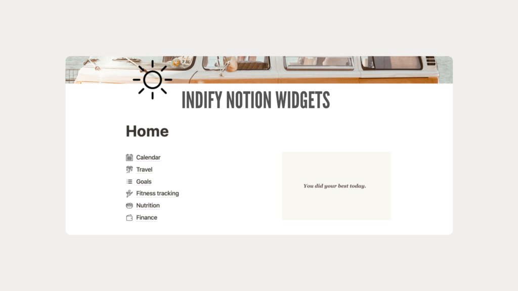 Indify Notion Widgets are more than just decorative elements; they transform your Notion workspace into a fully interactive, organized, and visually appealing dashboard.